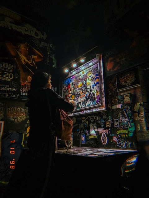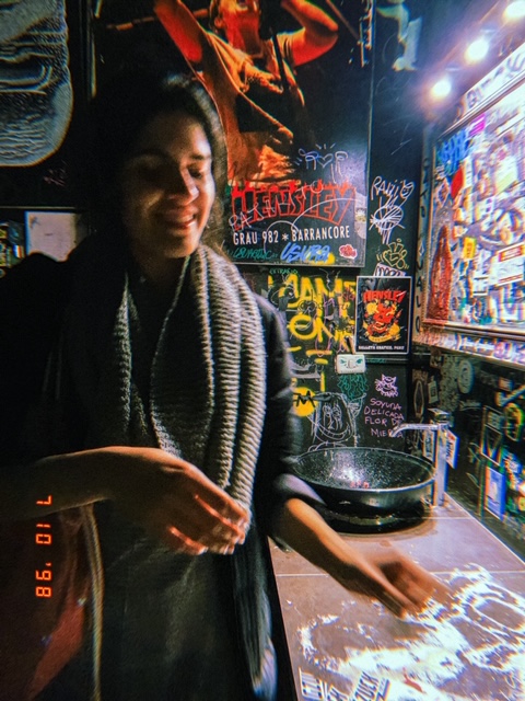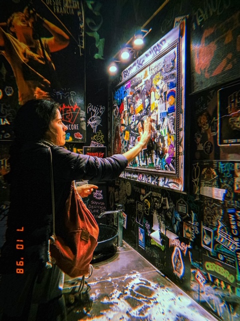 “Recuerdas ese día que salimos de la clase de baile en Barranco y encontramos ese bar con las luces que siempre decíamos íbamos a entrar, mágicamente estaba vacío y pudimos tomarle fotos a todo el local, pegaste un sticker y fuimos a la barra a pedirnos algo, no se pudo porque no aceptaban debito, nos fuimos al paradero de nuestro micro de regreso a nuestras casas con la promesa de regresar algún día”